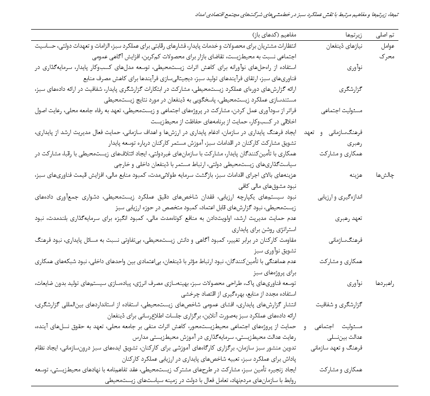 عملکرد سبز, خط‌مشی‌گذاری, تحلیل مضمون, شرکت‌های مجتمع اقتصادی امداد